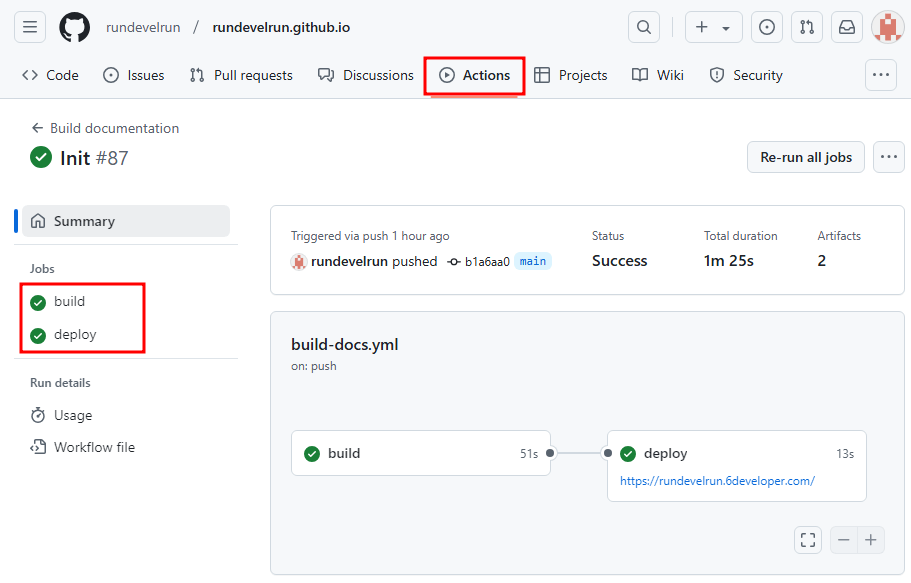 name: Build documentation on: push: branches: [ "main" ] workflow_dispatch: permissions: id-token: write pages: write env: INSTANCE: 'Writerside/in' ARTIFACT: 'webHelpIN2-all.zip' DOCKER_VERSION: '241.15989' jobs: build: runs-on: ubuntu-latest steps: - name: Checkout repository uses: actions/checkout@v4 with: fetch-depth: 0 - name: Build docs using Writerside Docker builder uses: JetBrains/writerside-github-action@v4 with: instance: ${{ env.INSTANCE }} artifact: ${{ env.ARTIFACT }} docker-version: ${{ env.DOCKER_VERSION }} - name: Save artifact with build results uses: actions/upload-artifact@v4 with: name: docs path: | artifacts/${{ env.ARTIFACT }} artifacts/report.json retention-days: 7 deploy: environment: name: github-pages url: ${{ steps.deployment.outputs.page_url }} needs: [ build ] runs-on: ubuntu-latest steps: - name: Download artifacts uses: actions/download-artifact@v4 with: name: docs - name: Unzip artifact run: unzip -O UTF-8 -qq '${{ env.ARTIFACT }}' -d dir - name: Setup Pages uses: actions/configure-pages@v4 - name: Package and upload Pages artifact uses: actions/upload-pages-artifact@v3 with: path: dir - name: Deploy to GitHub Pages id: deployment uses: actions/deploy-pages@v4