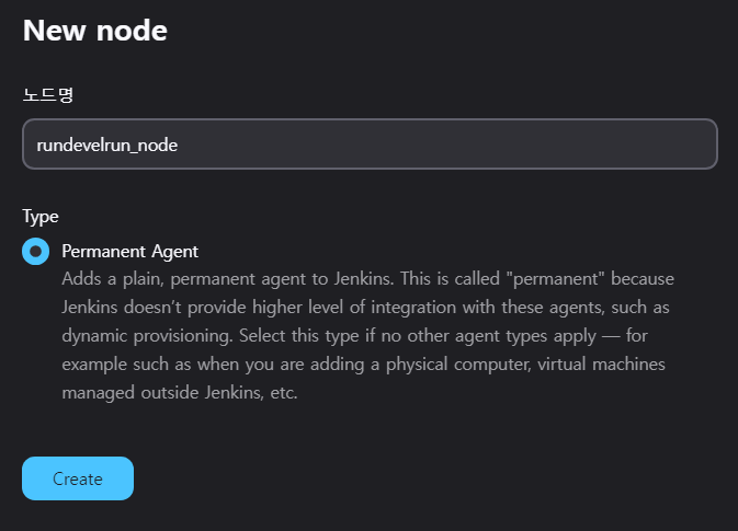 Dashboard ➡ Jenkins 관리 ➡ 노드 관리 ➡ New Node