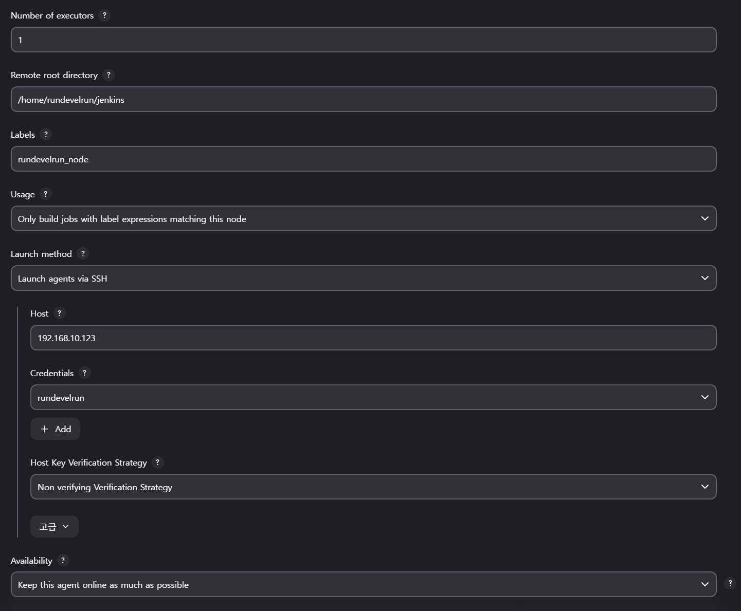 - Number of executors : 노드에서 수행할 수 있는 동시 빌드 수