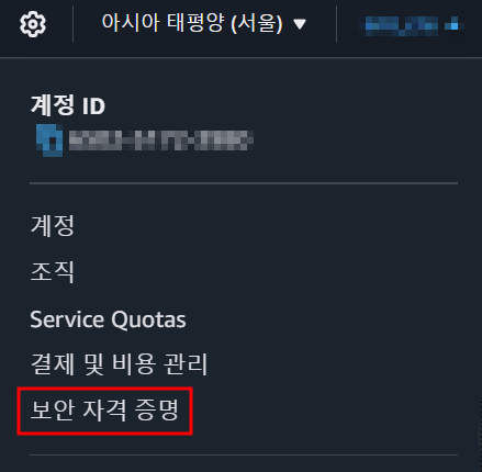 보안 자격 증명메뉴 선택 -