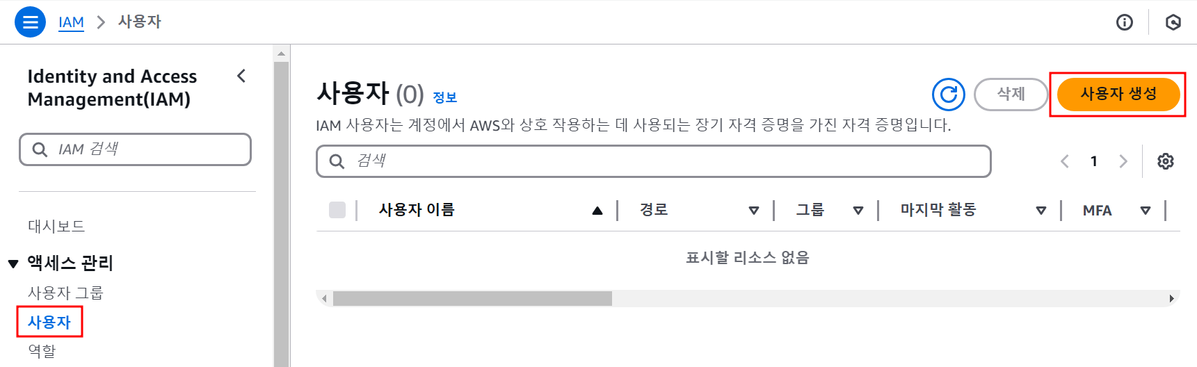 IAM ➡ 사용자 ➡ 사용자 생성